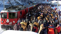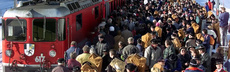 Am Eröffnungswochenende im Jahr 1999 besuchen Tausende den Eisenbahntunnel zwischen Klosters und Lavin.