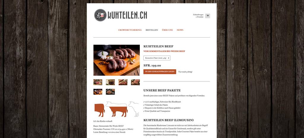 Diese Visualisierung zeigt aber auch, wie viel es braucht, bis ein Tier wirklich zu 100% verkauft ist. Die Wartezeit nehmen die Kunden von Kuhteilen.ch gemäss Firmengründer Moritz Maier jedoch gerne in Kauf, zu gross seien die Vorteile des Konzepts insgesamt für die Abnehmer.